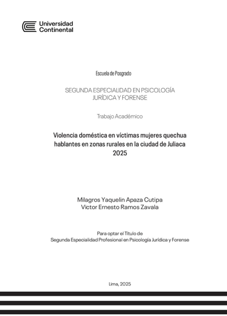 Violencia doméstica en víctimas mujeres quechua hablantes en zonas rurales en la ciudad de Juliaca 2025.