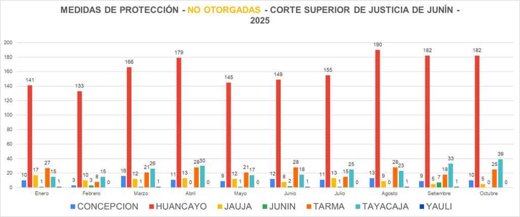 La Corte Superior de Justicia de Junín presenta un análisis de las denuncias atendidas en casos de violencia contra la mujer durante el periodo de enero a agosto de 2024, así como las sentencias y medidas de protección otorgadas. En el gráfico se detalla el número de denuncias registradas en las diversas provincias de la región. La situación en Huancayo es particularmente preocupante, con un total de 4,517 personas atendidas por esta causa, reflejando la gravedad del problema y la necesidad urgente de seguir fortaleciendo las políticas de atención y prevención.