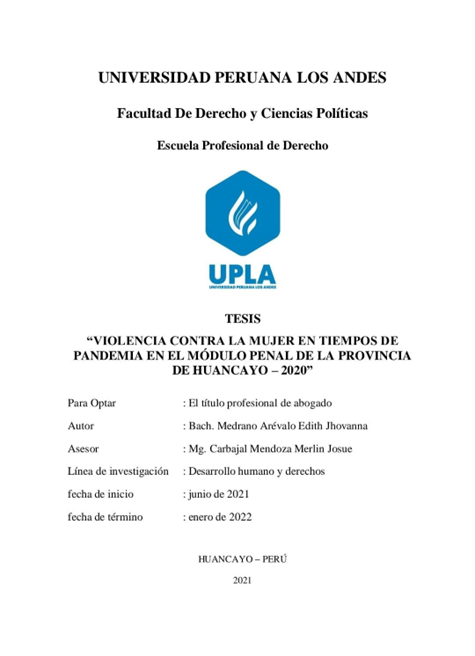 Violencia contra la mujer en tiempos de pandemia en el módulo penal de la Provincia de Huancayo – 2020.